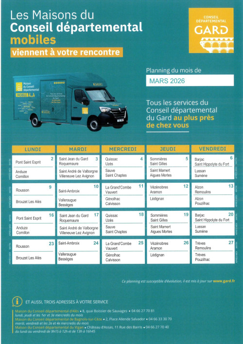 A Saint Chaptes 2 mercredi par mois, après-midi, sur le parking devant la Mairie